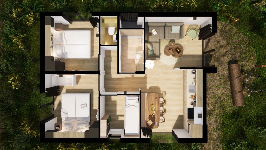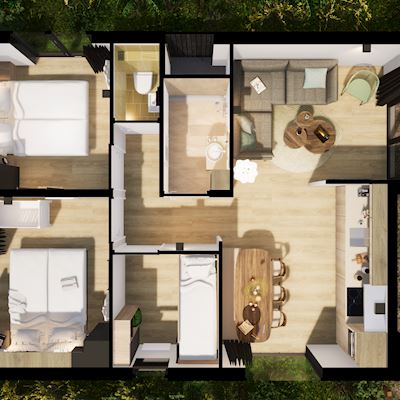 - Two bedrooms with a double box spring bed
