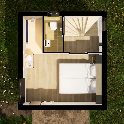 - Bedroom with two single box spring beds on the first floor
