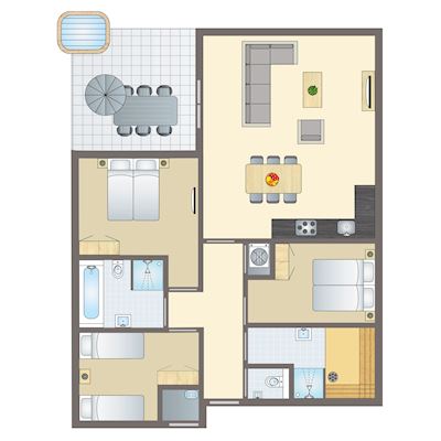 - Three bedrooms