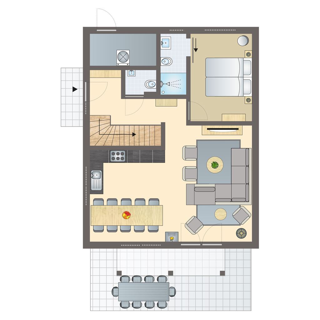 - Bathroom with walk-in shower, bathtub and double washbasin