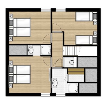 - Three bedrooms with two single beds on the first floor