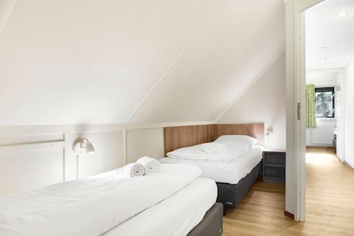 - Bedroom with two single Auping box spring beds, 2 person soft mattress topper and flatscreen TV