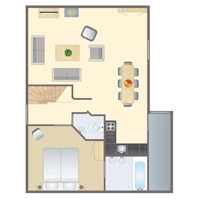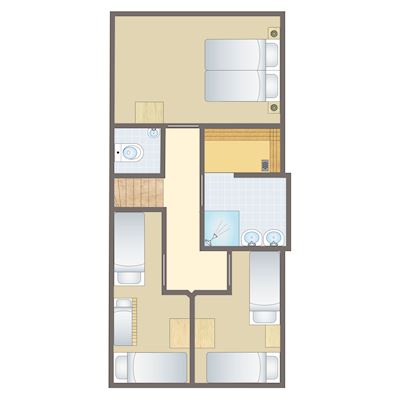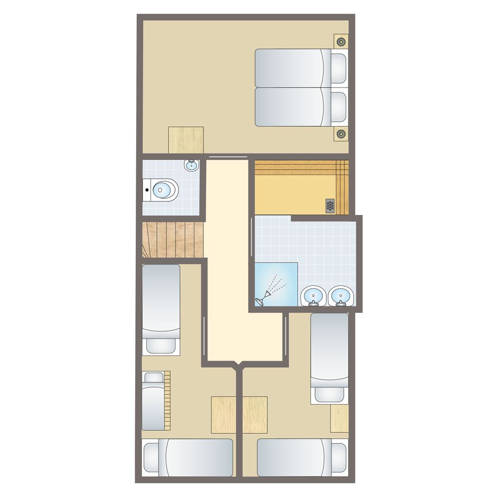 - Bathroom with shower cubicle and double washbasin on the first floor