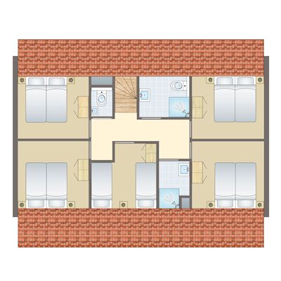 - Bathroom with shower cubicle, washbasin and toilet on the first floor