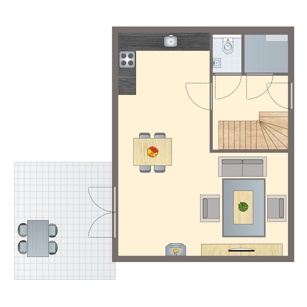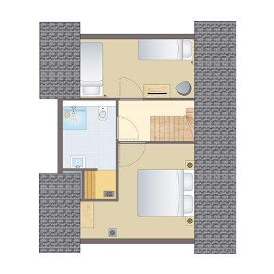 - Bathroom with walk-in shower, sun shower, wash basin and toilet on the first floor