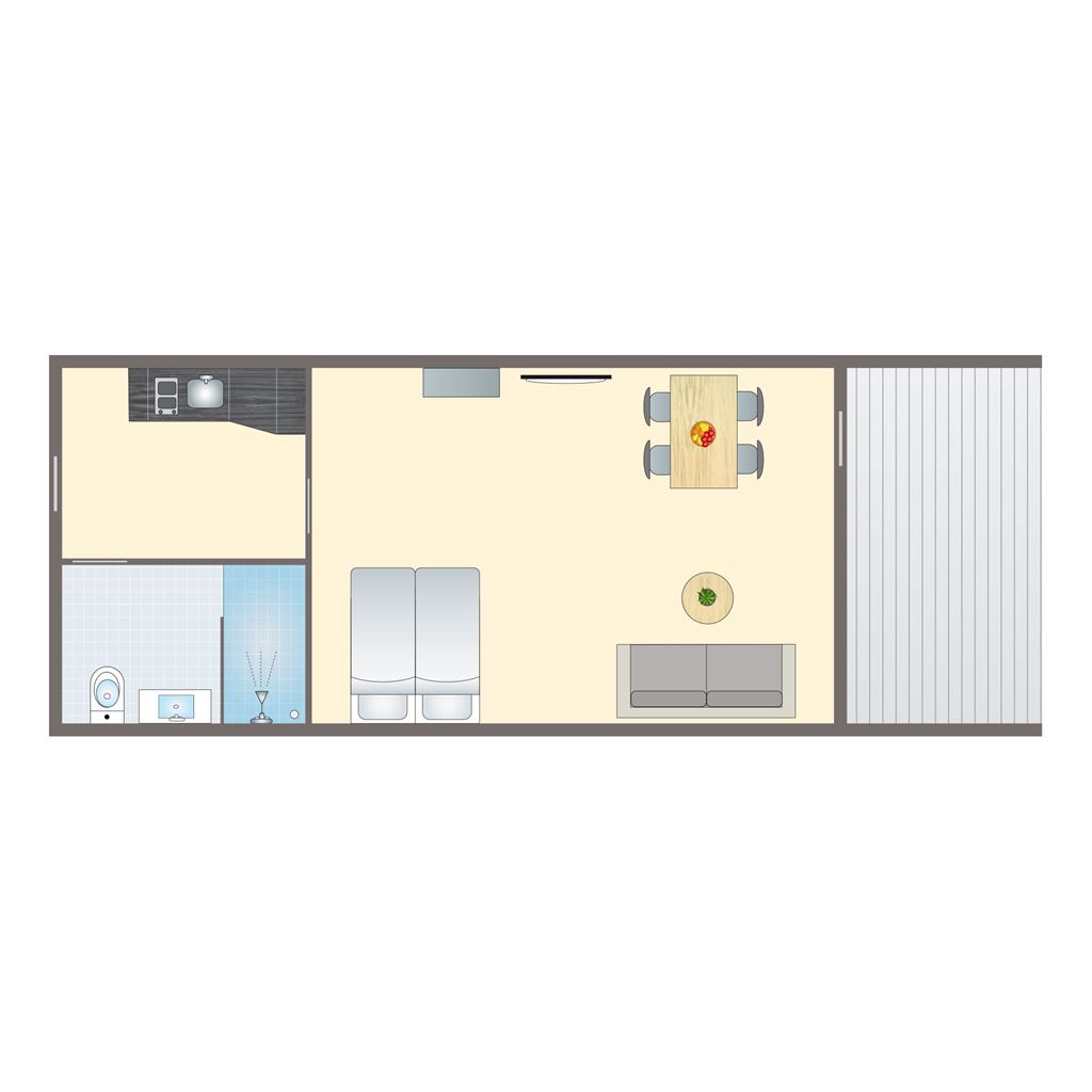 A cozy and newly renovated studio holiday apartment located on the ground floor. The apartment has direct access to a practical, well-maintained kitchen with 2 ceramic hobs, an oven, a fridge with freezer compartment, a kettle, and a coffee maker – ideal for light meals. The bathroom has a shower, sink, and toilet.The living area features a combined living and sleeping space with a comfortable double bed, a sofa area, and a dining area. The careful renovation ensures a modern and pleasant environment while still retaining the original charm. From the attached south-facing terrace, you can enjoy views of the protected heathland and the North Sea to the right.This apartment is an excellent choice for an active couple seeking a comfortable base with easy access to Hirtshals’ scenic surroundings and charming cafés and restaurants. The properties are privately owned, and photos, descriptions, and floor plans are indicative and may vary.