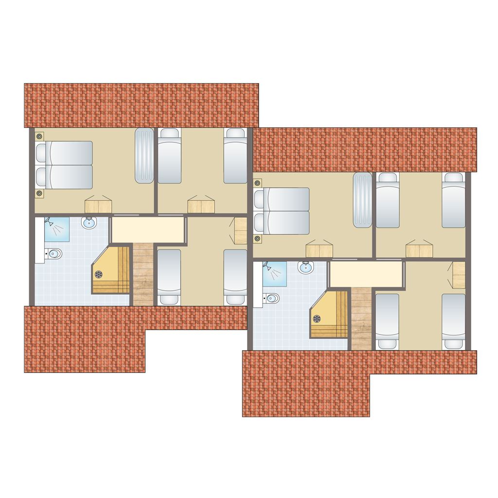 - Six bedrooms with two single Auping box spring beds on the first floor