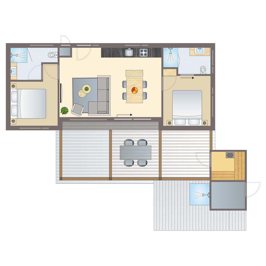 - Two en-suite bathrooms with walk-in shower, rain shower, wash basin and toilet