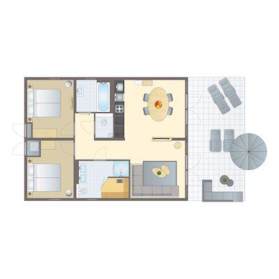 - Bathroom with rain shower, sunshower, double wash basin and toilet