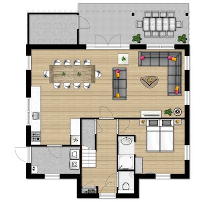 - Bedroom with two single box spring beds and flatscreen-TV on the ground floor
