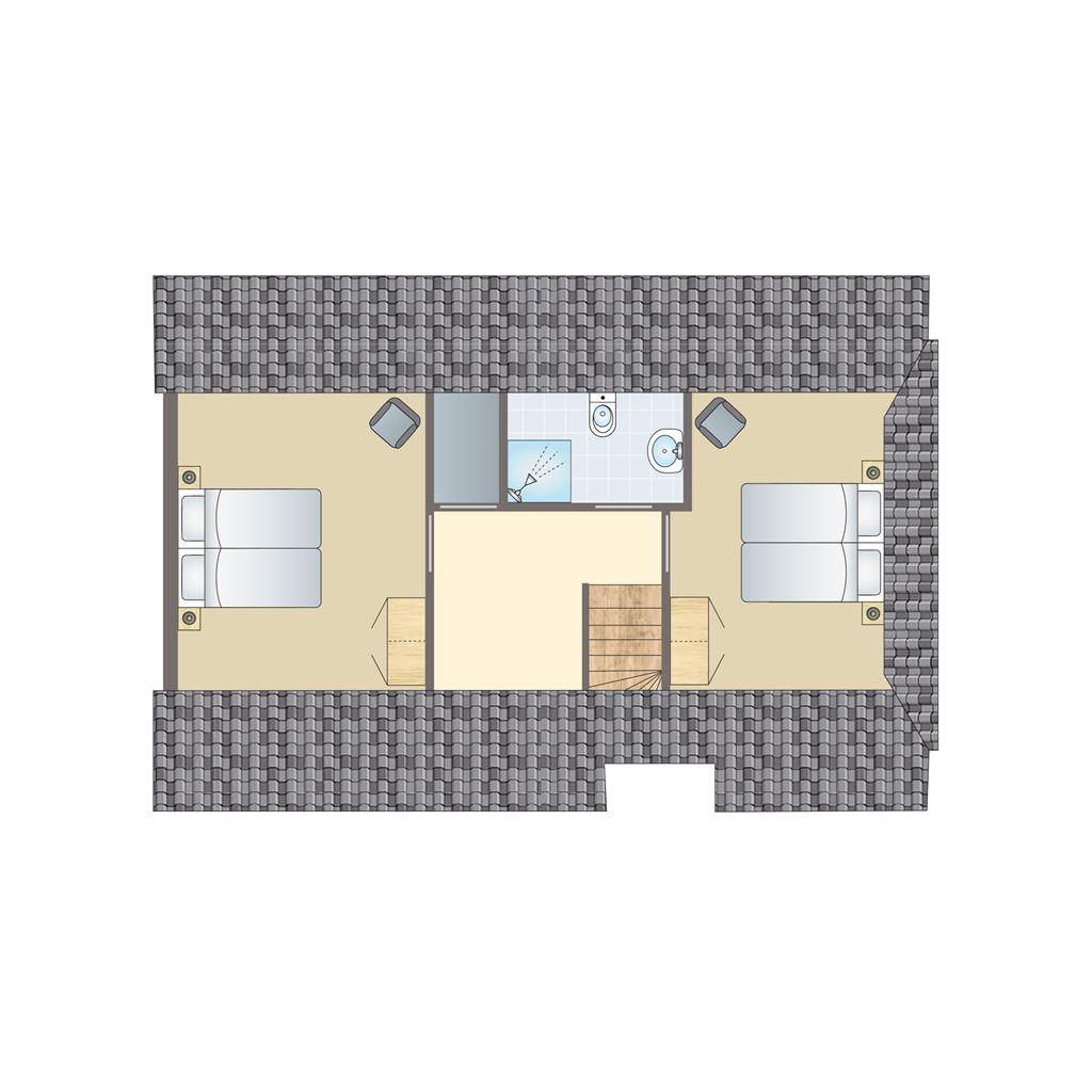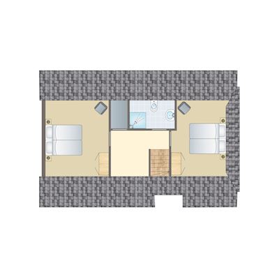 - Bedroom with two single box spring beds, 2 person soft mattress topper and flatscreen TV