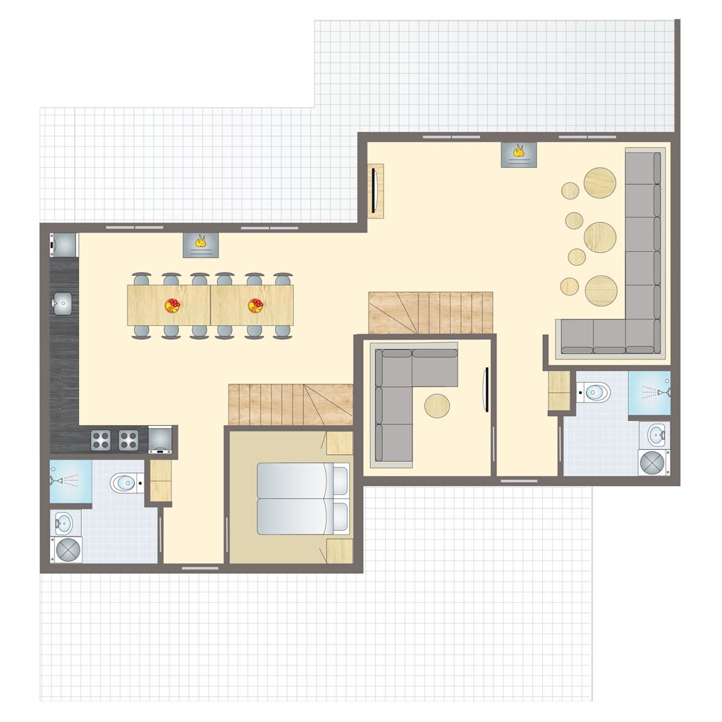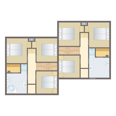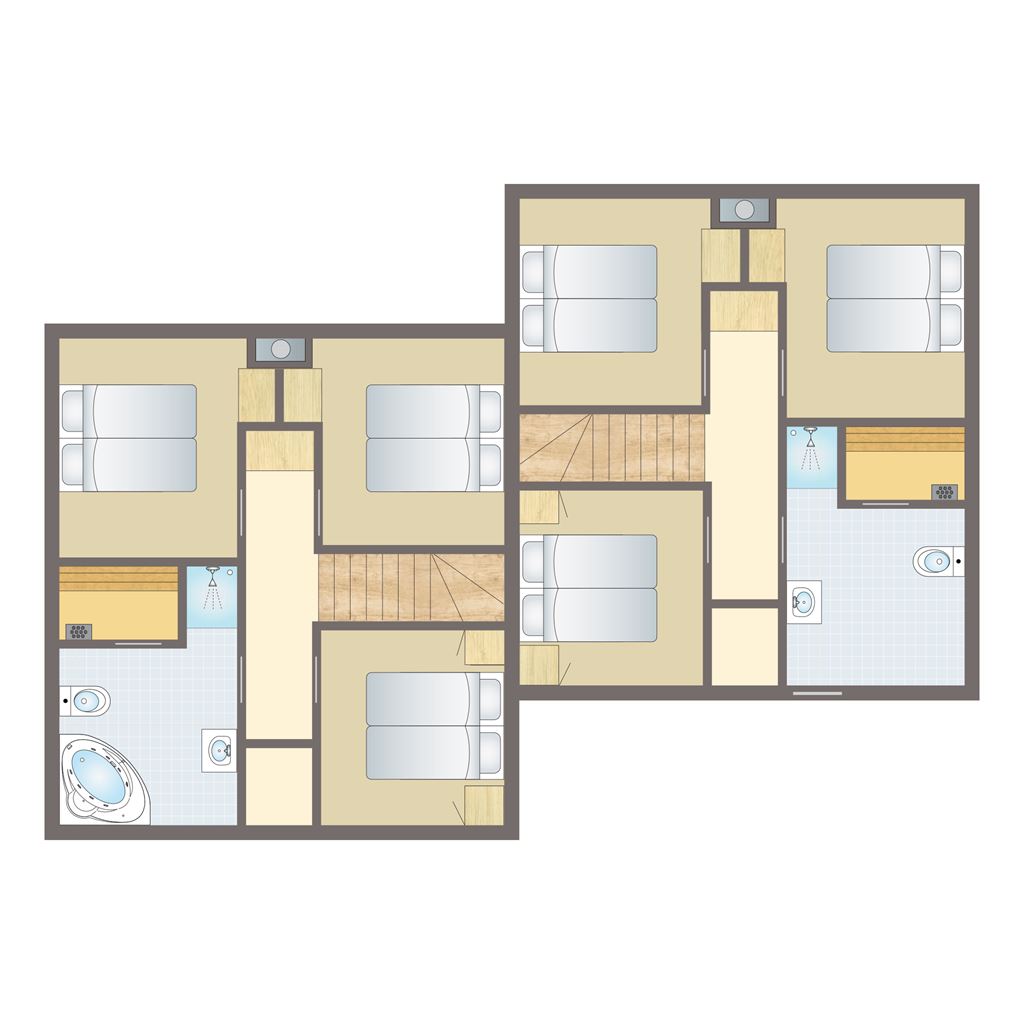 Beautiful and spacious holiday home on two floors with plenty of room for family and friends. On the ground floor, there is a beautiful kitchen/dining area open to the living room, which has a wood-burning stove and access to the terrace. There is one bedroom with a double bed and two bathrooms, one of which has a washing machine and dryer on the ground floor. On the first floor, there are six bedrooms with double beds and two bathrooms, one of which has a spa bath and sauna. The holiday homes are privately owned, so descriptions, photos, specifications and floor plans of the holiday homes are indicative and may vary.
