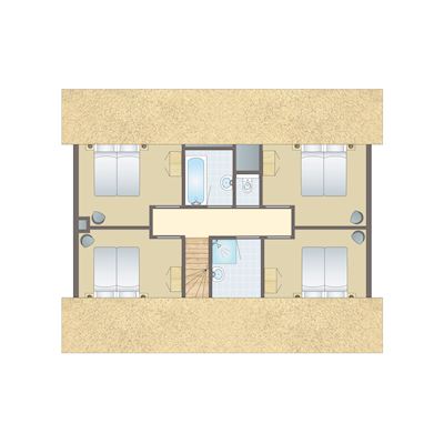 - Bedroom with two single box spring beds and flatscreen TV on the ground floor