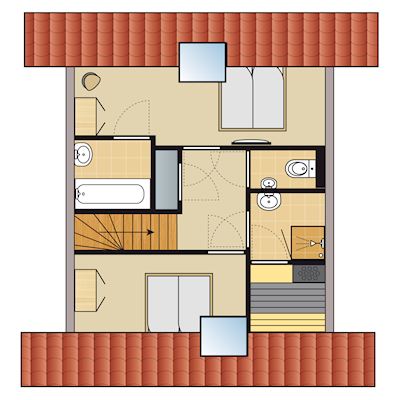- Bedroom with two single box spring beds, soft mattress topper and TV on the first floor