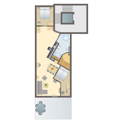 - Bathroom with whirlpool bathtub, double rain shower and steam shower, double washbasin and toilet