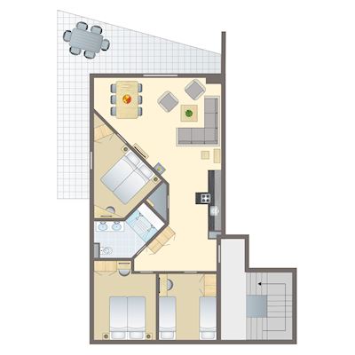 - Wellness-bathroom with walk-in double rain-/steam shower, double washbasin and toilet