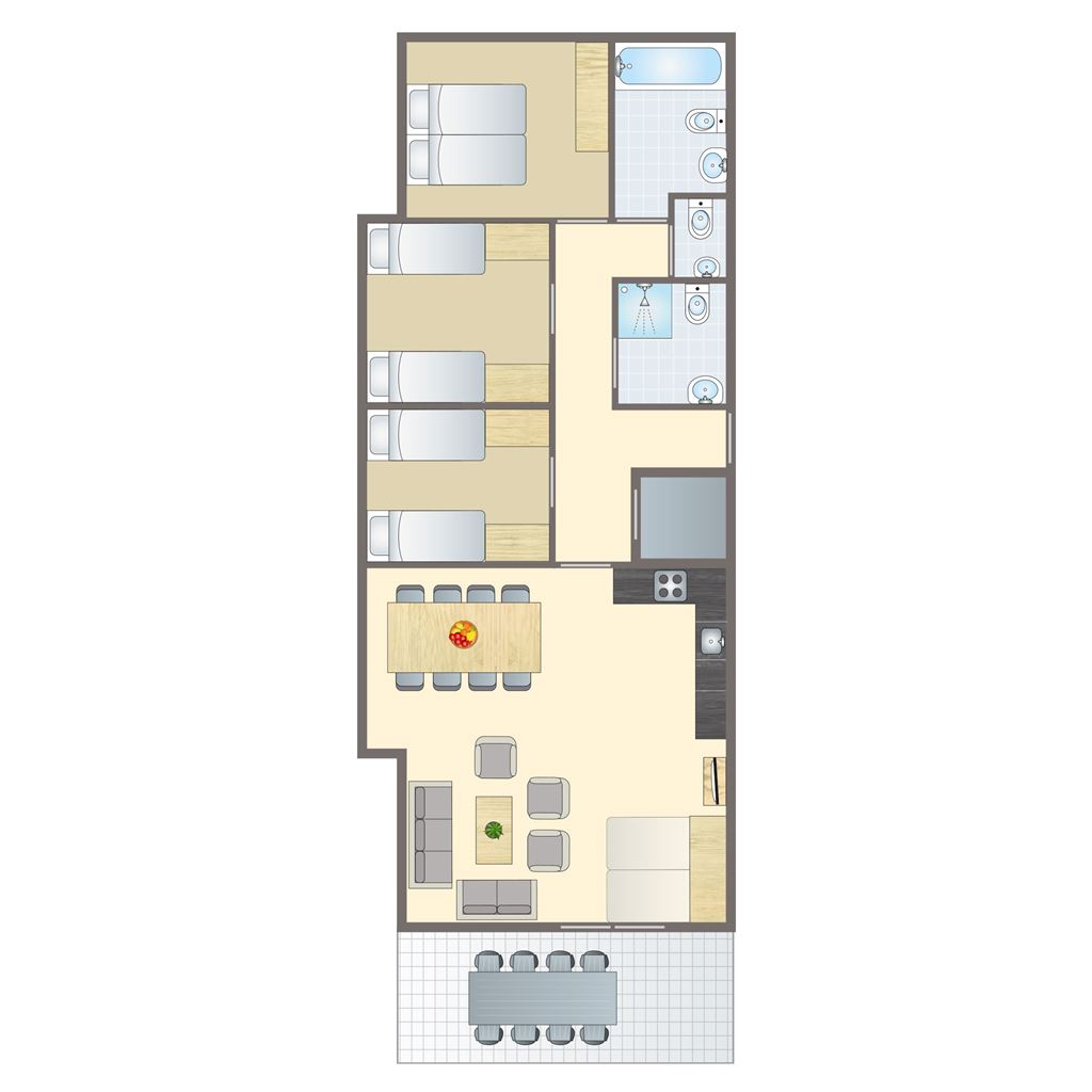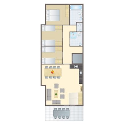 - Three bedrooms