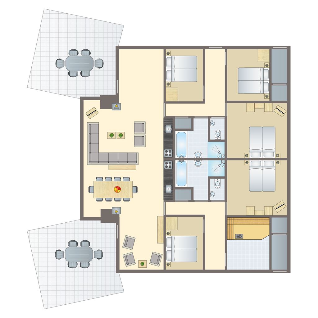 End your holiday luxuriously with the free luxury check-out service. Upon departure, the rubbish is removed, the dishwasher emptied and the beds are stripped for you. That's a relaxing departure!