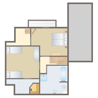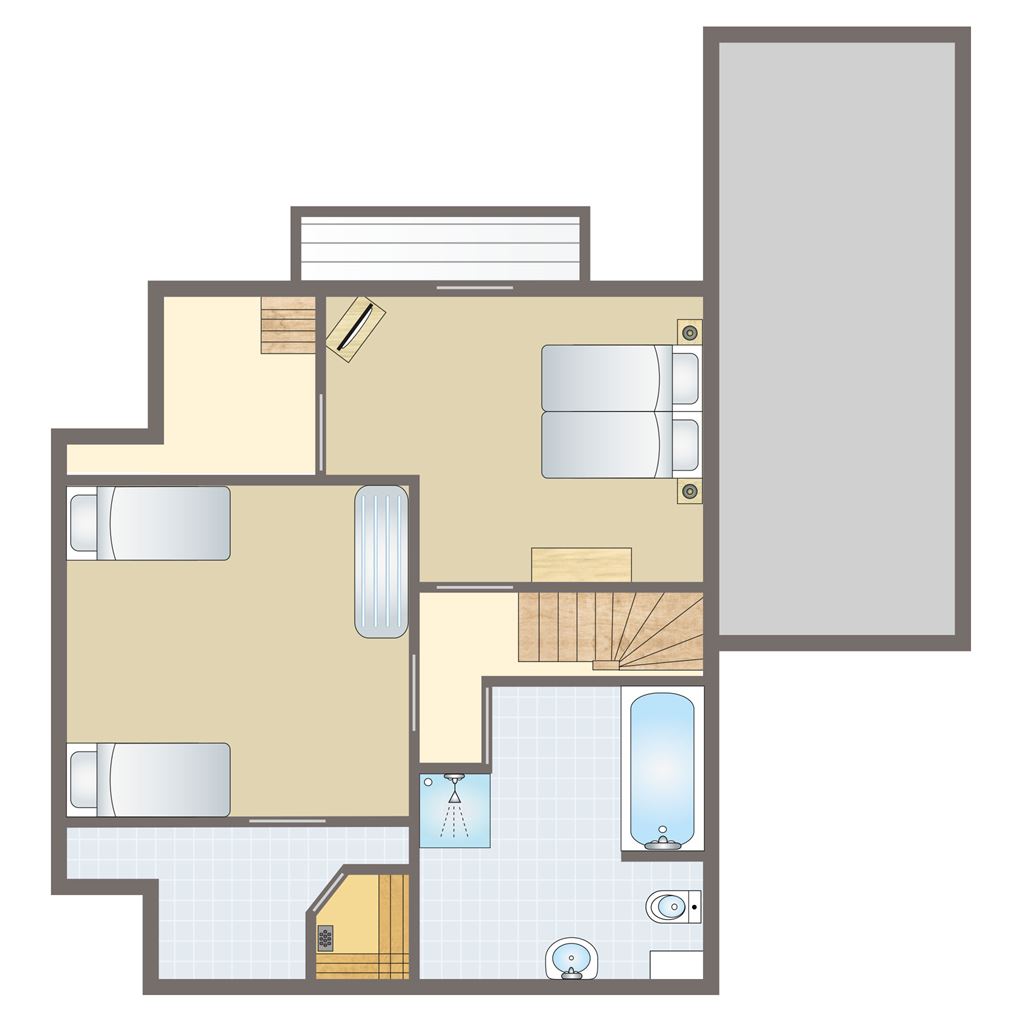 - Bathroom with bathtub, shower cubicle, wash basin and toilet on the first floor