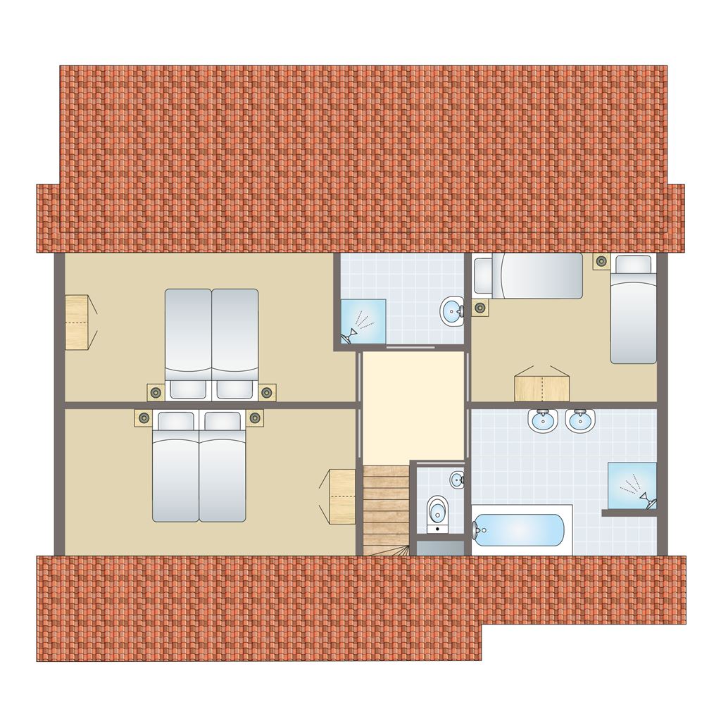 - Bathroom with bathtub, shower cubicle and double wash basin on the first floor